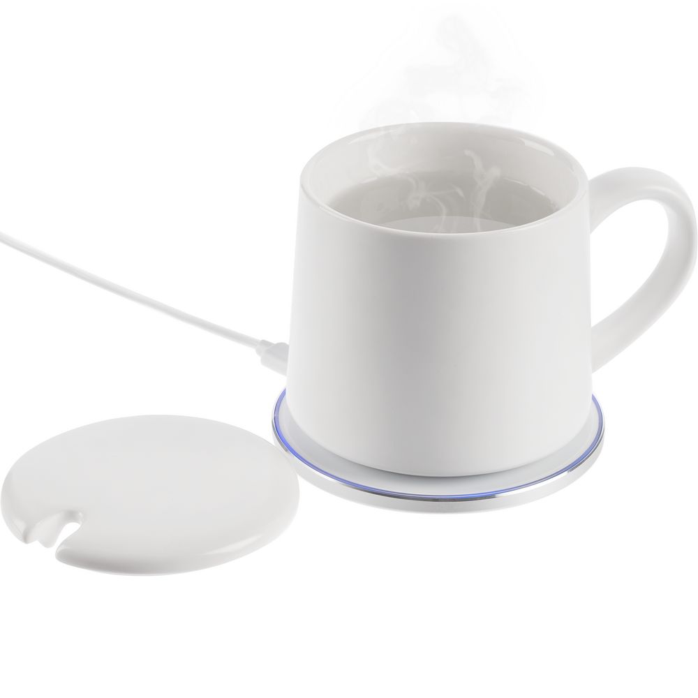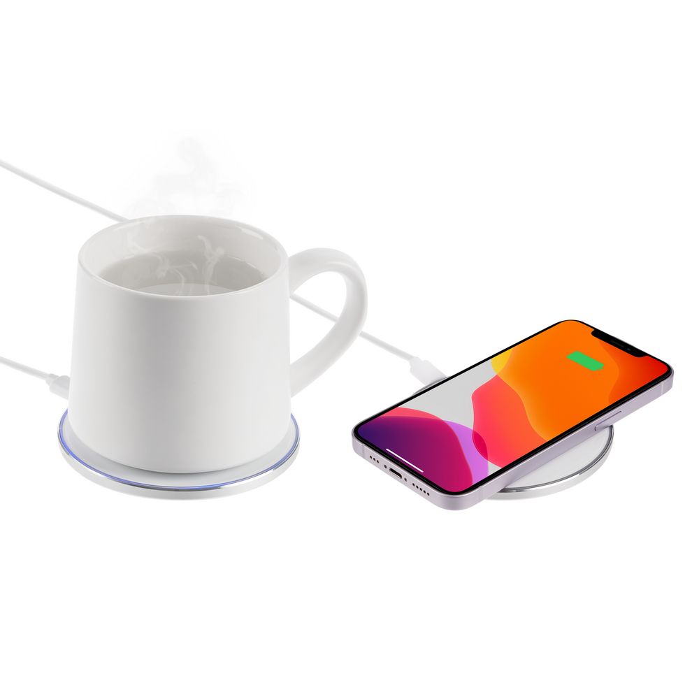 Кружка с подогревом и беспроводной зарядкой Dual Base ver. 2.0 matt, белая купить оптом и в розницу с нанесением логотипа в Челябинске