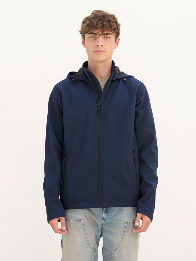Мужская куртка софтшел на молнии и с капюшоном.