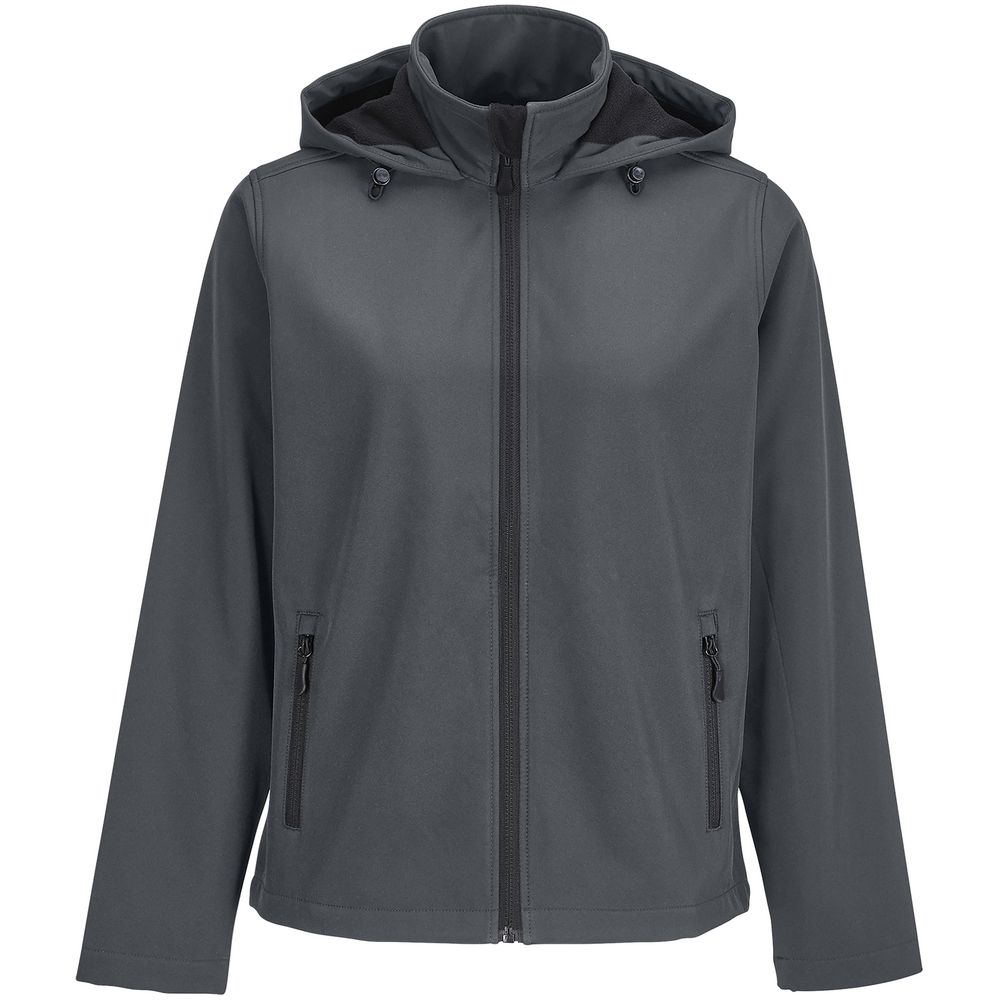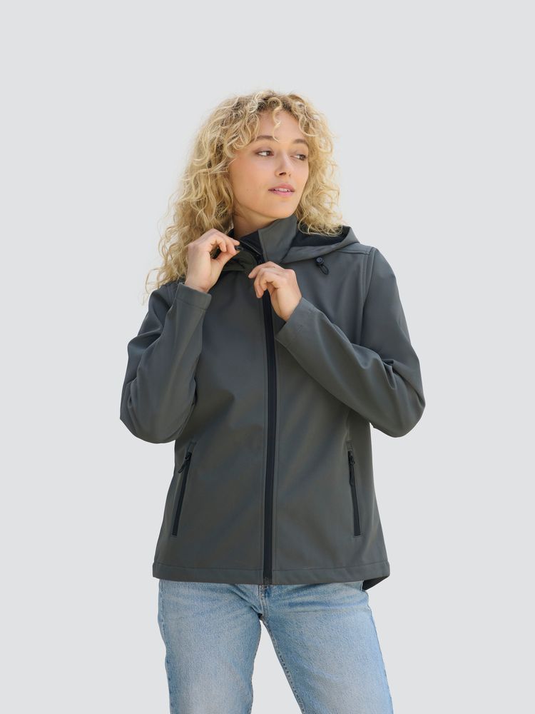 Куртка софтшелл с капюшоном женская Race Women, темно-серая купить оптом и в розницу с нанесением логотипа в Челябинске