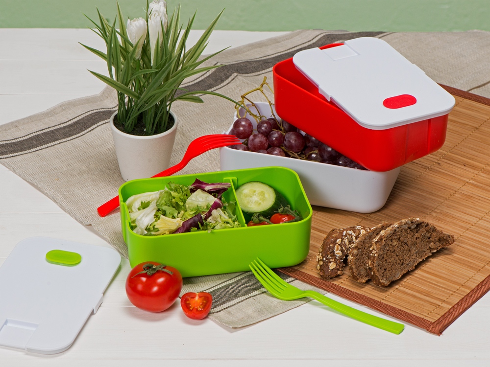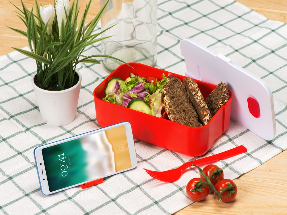 Ланч-бокс Neo можно брать с собой на работу, в школу, университет и командировки. Внутри прочной пластиковой емкости находятся снимаемая перегородка и вилка. Крышка с клапаном препятствует выпадению продуктов из бокса. Чтобы облегчить открытие контейнера, сначала выпустите воздух из него, потянув за силиконовый клапан на крышке. Деталь для фиксации крышки контейнера выполняет дополнительную функцию подставки для телефона, что особенно понравится тем, кто привык смотреть видео или читать книги во время перекуса. Ланч-бокс Neo можно разогревать в микроволновой печи, предварительно сняв крышку контейнера. Также разрешается использовать в посудомоечной машине и морозильной камере. Объем- 1л.
