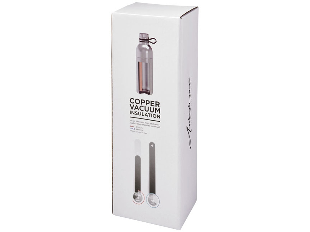 Медная спортивная бутылка с вакуумной изоляцией Koln объемом 590 мл. Двустенная вакуумная конструкция из нержавеющей стали с медной изоляцией позволит вашему напитку оставаться холодным в течение 48 часов и горячим — как минимум 12 часов. Кроме того, конструкция препятствует образованию конденсата на внешней стороне бутылки. Оснащена закручивающимся колпачком и крышкой из нержавеющей стали с удобной силиконовой петлей-держателем. Конструкция с двойным отверстием для легкой очистки и заполнения. Объем — 590 мл. Упакована в подарочной коробке Avenue. Нержавеющая сталь.