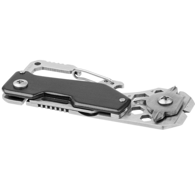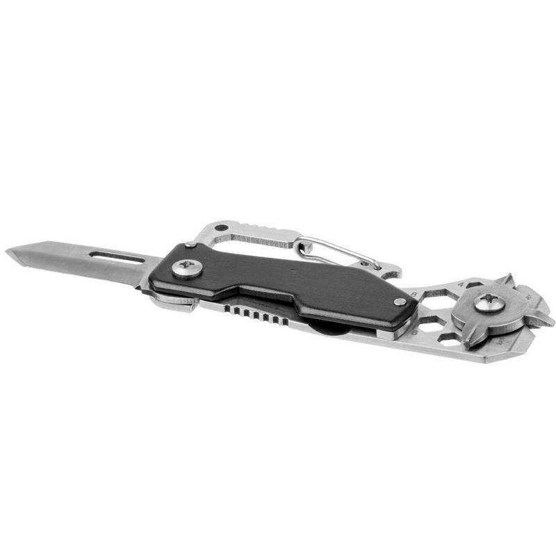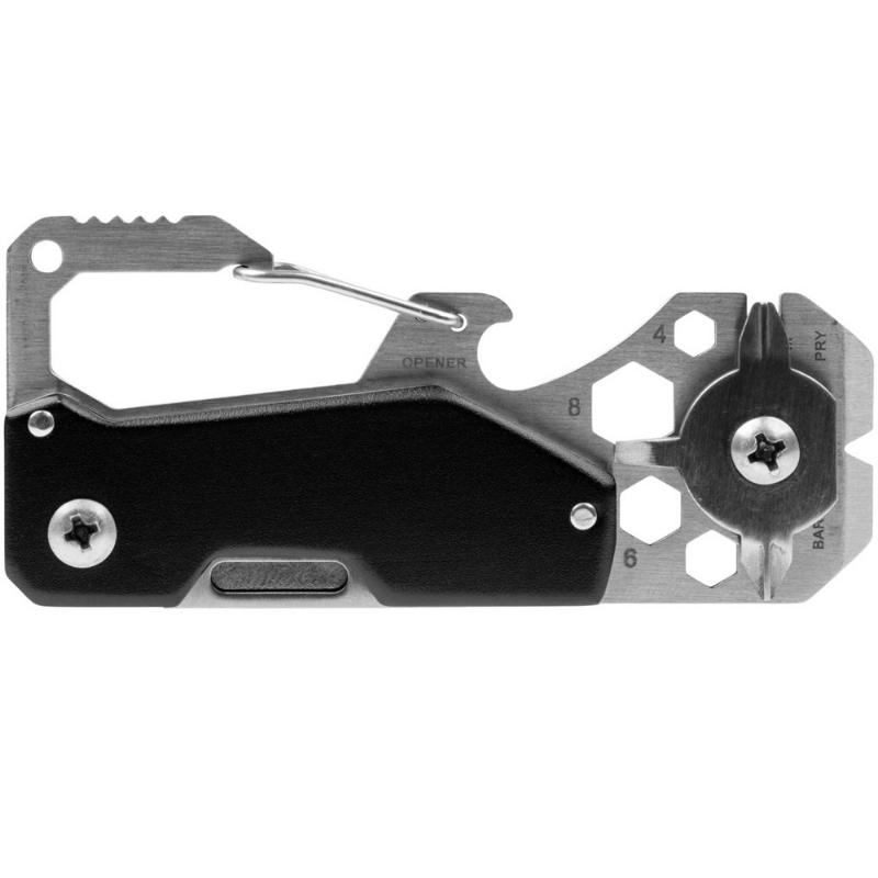 • 13 функций - ножик, карабин, линейка, открывалка, 4 шестигранных ключа, спицевый ключ, гвоздодер, 1 плоская отвертка, 1 маленькая и 1 большая отвертка Philips