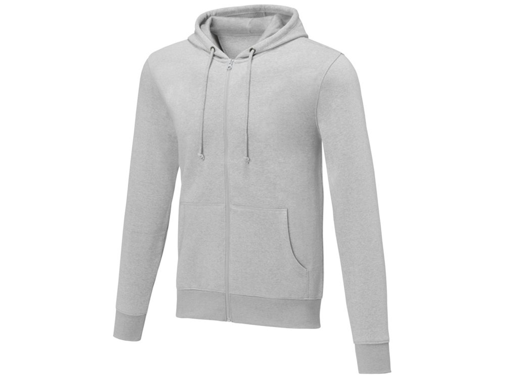 Мужская толстовка на молнии Theron. Основная этикетка, которую можно оторвать или отрезать, без неудобных пришитых ярлыков. Завязки на капюшоне. Расположенная по центру молния. Карман кенгуру. С подшивкой из гладкого трикотажа в рубчик. С манжетами из гладкого трикотажа в рубчик. Внутренняя сторона покрыта ворсом. Тесьма из основного материала по внутренней стороне горловины. Трикотаж 50% Хлопок, 50% Полиэстер, 240 g/m2.