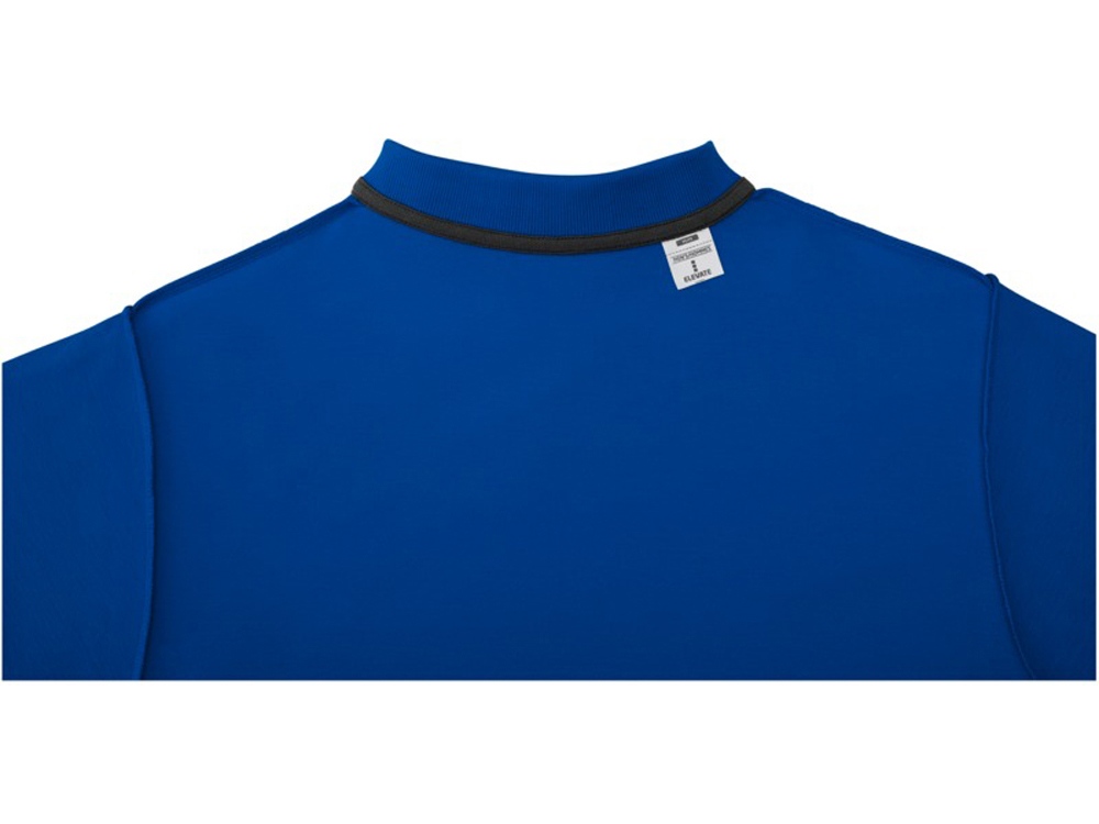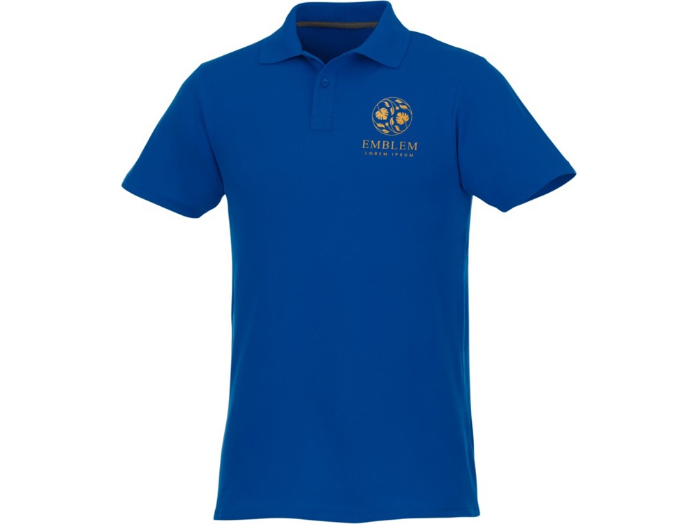 Мужское поло Helios с коротким рукавом. Отрезной-отрывной ярлык для комфорта. Воротник гладкой вязкой в рубчик. Планка с двумя пуговицами. Двойная строчка на воротнике и внизу изделия. Пуговицы в цвет изделия. Полоска на горловине в контрастном цвете. Трикотаж Piqué, 100 % хлопок. 180 г/м².