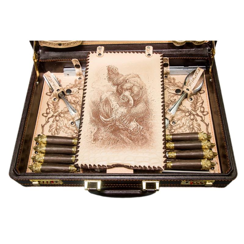 | Комплектация | Фляжка 0.45 - 1 шт., стопка — 8 шт., ложка - 8 шт., вилка - 8 шт., нож складной - 1 шт., тарелка - 8 шт., нож разделочный - 1 шт., тяпка - 1 шт., мангал - 1 шт., шампура (литье) - 8 шт. |
