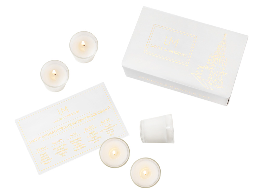 Подарочный набор ароматических свечей - это не только прекрасный, необычный подарок, но и отличный способ познакомиться брендом Lights of Moscow и его эксклюзивными ароматами. Scented candle set состоит из 5 ароматов со своей особенной историей, ассоциацией. Touch Притягательный и соблазнительный аромат во главе со спелой вишней, в которой контрастируют сладкие и терпкие, яркие и таинственные ноты. Красная и чарующая она пробуждает неутолимое желание и будоражит фантазию, завершая композицию незаметным шлейфом чувственных нот: бобами тонка, бергамота, ванили и сандалового дерева. Power Энергичная, но в то же время утонченная композиция, напоминающая морские брызги и дуновение ветра. Глубокие, акватические ноты постепенно раскрываются в тандеме с зелёным яблоком и белым мускусом. Бодрящий и свежий аромат завершается оттенками ландыша и мха, подчёркивая прохладу и романтику всей пирамиды нот. Secret Чувственная и романтическая орхидея - это цветок любви и красоты, олицетворяющий великолепие и совершенство. Женственная композиция дополнена оттенками цветка апельсина, который подчеркивает фруктовые акценты, а дополнение в качестве пленительных нот фиалки, мускуса и дыни придают особенную глубину композиции. Rich Это аромат роскоши, атмосфера светского мероприятия, проходящего в дорогом зале, где собрались леди и джентельмены. Листья табака имеют пряный и в тоже время свежий аромат, он прекрасно дружит с ванилью, усложняя композицию, делая её более дорогой и утонченной. В то время как сухофрукты и бобы тонка добавляют интригующей ноты аромату. Black Дымный и загадочный аромат с яркими нотами смолы и ладана ассоциируется с уверенностью и элегантностью. Восточно-древесная композиция дополнена восхитительным, интригующим шлейфом пало санто, кожи и чёрного перца. Комплектность: - Подарочная коробка с ложементом и брендированной лентой - 1 шт. - Свечи 5 шт.*50 мл. - Открытка - 1 шт. Условия хранения: — Свечи, аромасаше, аромадиффузоры, SPA-наборы следует хранить при температуре +18…+24 °C, вдали от источников тепла, сквозняков и прямых солнечных лучей. — Рекомендуемая влажность — не более 50%. — Избегайте длительного воздействия яркого света.