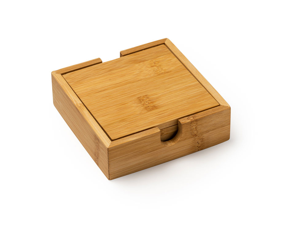 Набор из 4 бамбуковых подставок в элегантной бамбуковой коробке.
