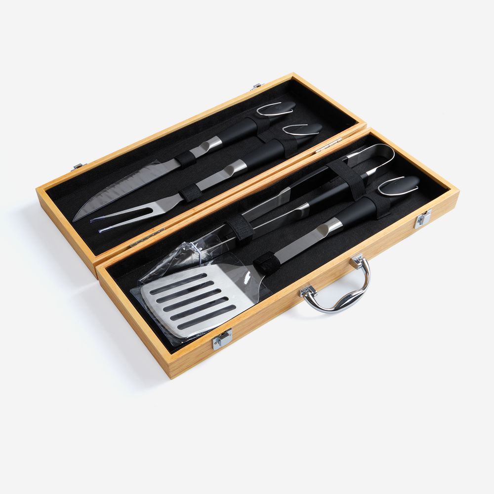 | Материал | нержавеющая сталь, пищевая, коррозионностойкая; ручка - покрытие софт-тач; кейс - дерево |