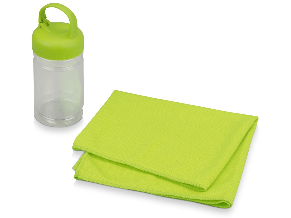 Материал товара бутылка- пластик, полотенце- полиэстер
