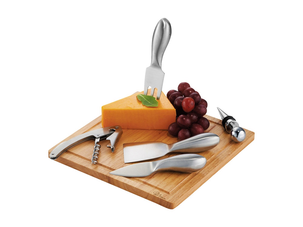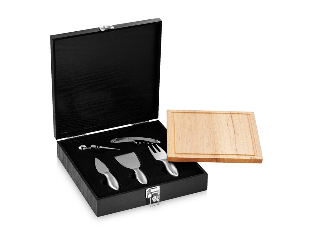 Набор для сыра и вина Mino. В этот набор из 6-ти предметов входит деревянная разделочная доска, три ножа для мягкого сыра, твердого и зрелого сыра, стоппер для вина и штопор. Набор предлагается в деревянной подарочной коробке с шильдом 40 х 25 мм для лого. Внимание, на изделии возможно наличие пятен, сколов, неровностей. В связи с этим цена на товар снижена, претензии, связанные с наличием указанных дефектов не принимаются.