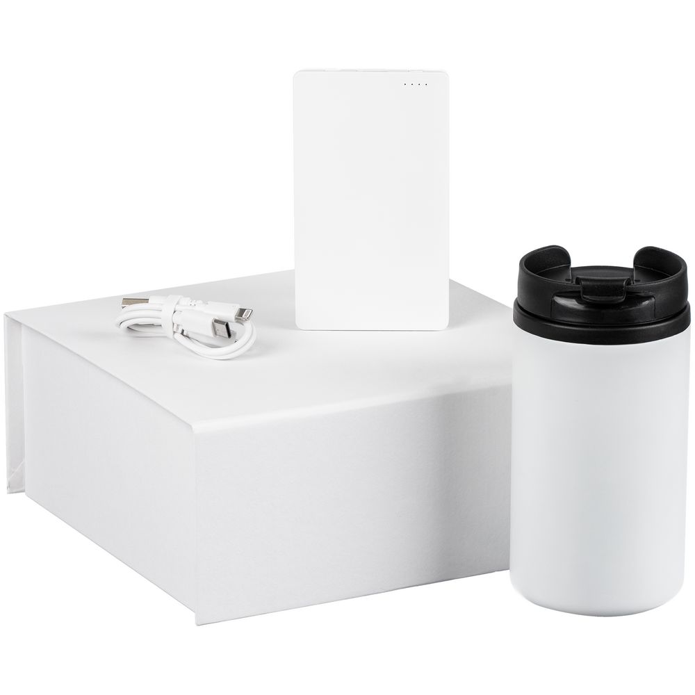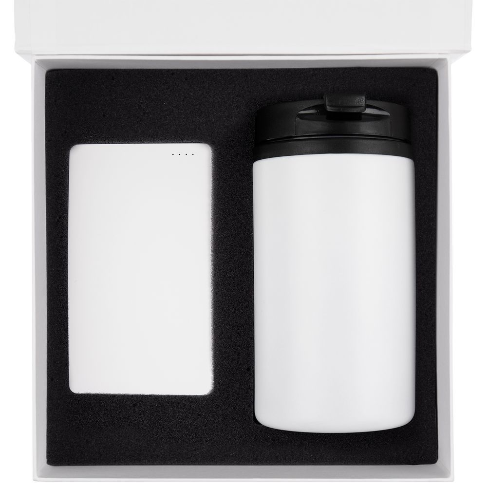 Набор Easy Trick — незаменимый спутник в дороге и офисе и быстрый способ восполнить заряд энергии. Плоский акуумулятор легко поместится даже в карман, а компактная термокружка — в любую кофемашину.
