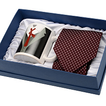 Оригинальный подарок не оставит равнодушным ни одного мужчину. В набор входит симпатичная кружка, украшенная изображением фрака с галстуком, а также настоящий галстук из качественного полиэстера.