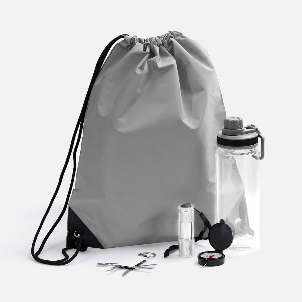 Набор Manifestour — практически survival kit для вылазки на природу! Входящие в состав брелок-мультитул, компас, бутылка для воды и фонарик — незаменимые вещи в любом путешествии, а благодаря рюкзаку из светоотражающей ткани вас легко будет заметить в темное время суток.Объем рюкзака 10 л.