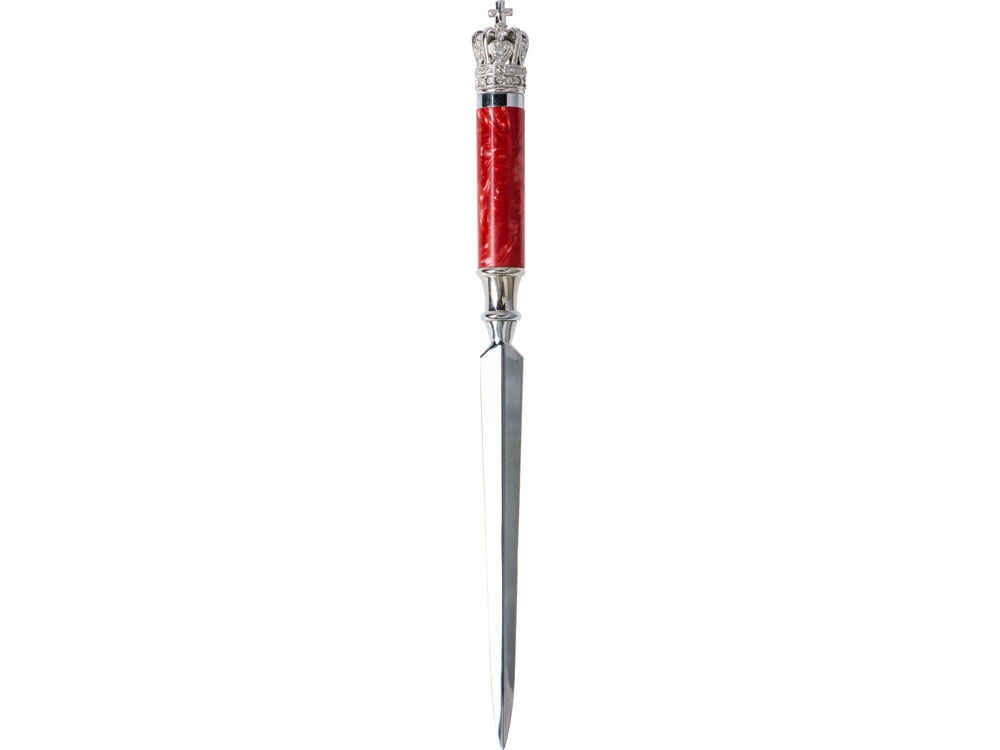 Набор Принц Уэльский – элегантный набор офисных аксессуаров, который станет не только незаменимым инструментом, но и стильным украшением вашего рабочего пространства. В комплекте: - Шариковая ручка - Лупа - Нож для бумаги - Стильный футляр для хранения и переноски Ключевые преимущества: Статусный дизайн: Каждый предмет увенчан элегантной короной и украшен декором из красного перламутра. Высокое качество: Изготовлены из металла и качественного пластика. Подарочная упаковка: Набор представлен в жестком футляре из бордовой сплит- кожи с поролоновым ложементом, который гарантирует сохранность аксессуаров и подчеркивает ценность подарка. Поддержите свою продуктивность с набором, который объединяет стиль, функциональность и внимание к деталям!