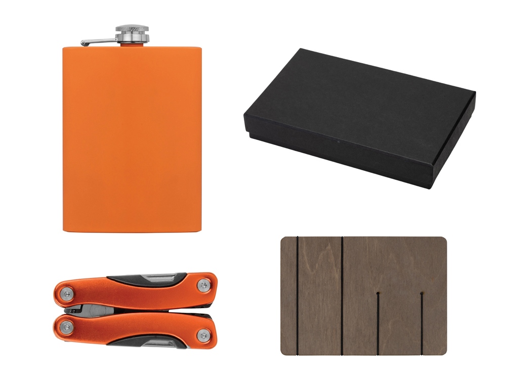 | Материал товара | ложемент - фанера, резинка, фляжка - нержавеющая cталь 304 марки с покрытием soft-touch, мультиинструмент - металл, полиэстер, коробка - картон |