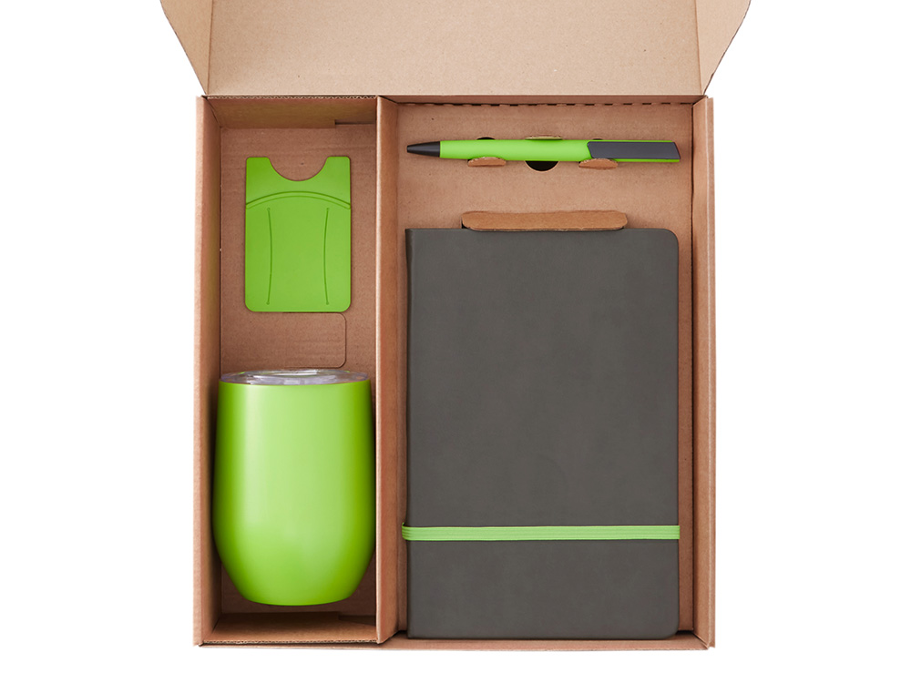| Материал товара | картхолдер - силикон, термокружка - нержавеющая сталь, блокнот - термопластичный полиуретан с зернистой структурой, ручка - пластик с покрытием софт-тач, ланчбокс - 50% пшеничное волокно, 50% ПП-пластик, открытка - бумага, коробка - картон |