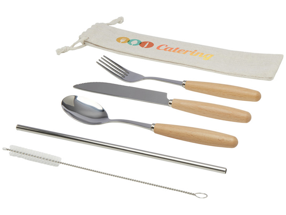 Набор столовых приборов из нержавеющей стали и бука Root из 5 предметов - Натуральный купить оптом и в розницу с нанесением логотипа в Челябинске