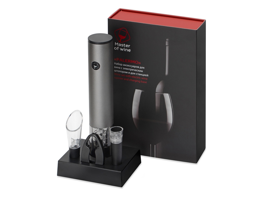 Набор винных аксессуаров Palermo с электрическим штопором на док-станции купить оптом и в розницу с нанесением логотипа в Челябинске