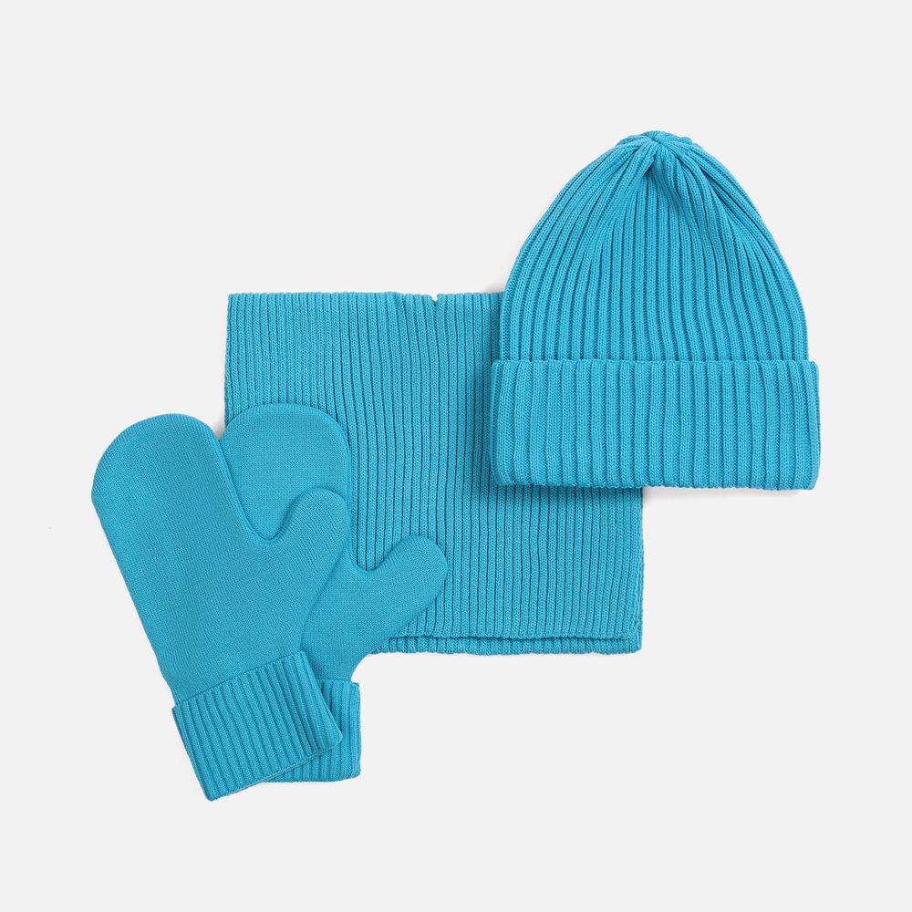В набор входит удобный шарф с технологичным отверстием для быстрого завязывания, шапка с двойным отворотом и теплые двухслойные варежки с широкой манжетой. Все изделия связаны из акриловой пряжи, отличаются практичностью и элегантной простотой.