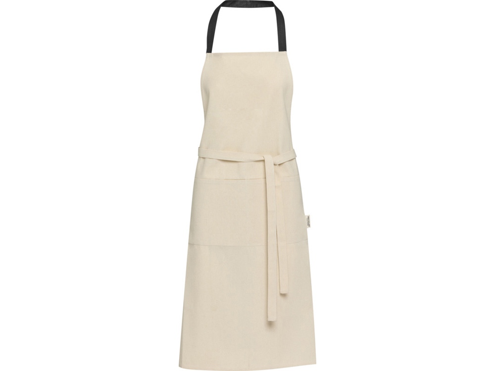 Фартук Nia изготовлен из 100% сертифицированного GRS переработанного хлопка плотностью 200 г/м². Этот фартук из натурального хлопка с контрастной петлей на шее защитит вашу одежду во время приготовления пищи. Фартук Nia с двумя соседними карманами общим размером 45 x 20 см и завязками длиной 1 метр обеспечивает обеспечивает практичность и стиль на вашей кухни. GRS certified recycled cotton, 210 g/m2.