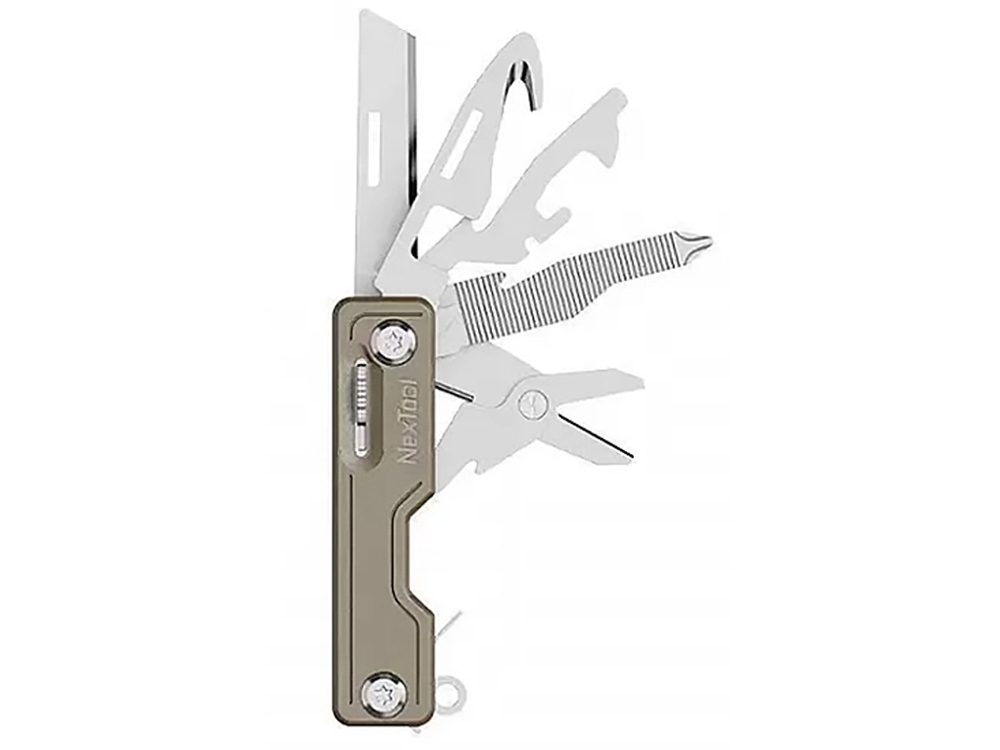 Нож-брелок NexTool Knight EDC – складной многофункциональный нож 10 в 1. Вес составляет всего 88 грамм, а размеры настолько малы, что его можно использовать как брелок для ключей, а так же этот мультитул незаменимая вещь в повседневной жизни, в походе, на охоте или рыбалке. Корпус состоит из прочного, матового ABS пластика, который обволакивает высокопрочную сталь марки 20Cr13 (корпус) и 30Cr13 (нож). Марка стали 30Cr13 (производство Германия) нержавеющая (коррозионно-стойкая). Ножи этой марки стали износостойки, легко переносят удары и не будут раскалываться при пользовании. Перечень функционала: нож (длина лезвия 5 см), аварийный молоток для разбивания стекла, открывалка консервных банок, стропорез (разрежет ремень, веревку, шнурки), ножницы, держатель для телефона (вертикальный и горизонтальный), ключ для извлечения сим-карты, напильник, открывалка для бутылок, отвертка.