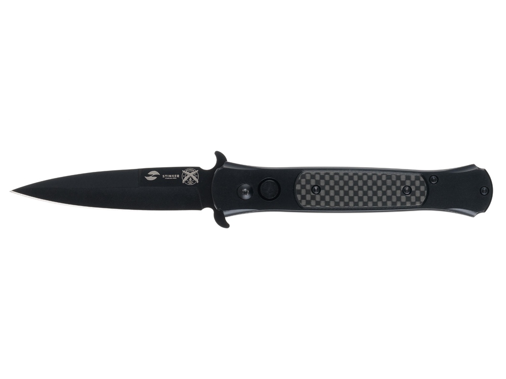 НОЖ СКЛАДНОЙ STINGER Автоматический складной нож из высококачественных материалов, идеально подойдет для повседневного использования. Рукоять ножа изготовлена из нержавеющей стали с накладками из карбона (углепластика) – это полимерный материал с композитным составом, изготовленный из переплетенных нитей углеродного волокна с использованием эпоксидных смол. Карбон является легким и исключительно прочным материалом, стойким к высоким температурам и агрессивным средам, отлично переносит влагу. Рукоять ножа собрана на втулках - бонках, поэтому при необходимости его можно легко промыть. На рукояти расположена съемная клипса для удобного размещения ножа в кармане. Нож мгновенно открывается и надежно фиксируется благодаря замку Button Lock. Дополнительные упоры на клинке могут выполнять функцию гарды, предотвращая соскальзывание руки на лезвие клинка. Клинок изготовлен из нержавеющей стали 8CR14MoV. Основное преимущество этой стали - отличное противодействие коррозии благодаря высокому содержанию хрома (14,5%). Сталь 8CR14MoV относится к высокоуглеродистым сталям (0,8%), углерод в составе придает сплаву твердость в диапазоне 57-59 HRC, что позволяет режущей кромке лезвия длительное время оставаться острой. Оптимальное содержание легирующих элементов придает стали гибкость, лезвие хорошо поддается правке и заточке. Клинок из стали 8CR14MoV отличается высокой прочностью и устойчивостью к износу, имеет долгий срок службы, обеспечивает качественный и точный срез. Характеристики: Материал клинка: нержавеющая сталь 8CR14MoV Твердость по шкале Роквелла: 57-59 HRC Материал рукояти: нержавеющая сталь/карбон Метод открывания клинка: автомат Фиксатор клинка: Button Lock Длина ножа: 205 мм Длина клинка: 87 мм Толщина клинка: 3,5 мм Вес: 154 г Цвет рукояти: черный Особенности: рукоять с клипом В комплекте: нейлоновый чехол
