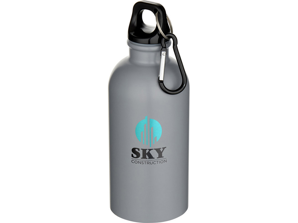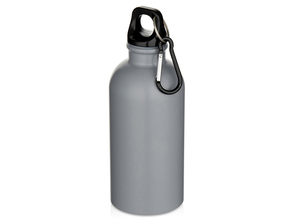 Oregon одностенная бутылка для воды с карабином, изготовленная из нержавеющей стали, сертифицированной по стандарту RCS, объемом 400 мл - Серый купить оптом и в розницу с нанесением логотипа в Челябинске