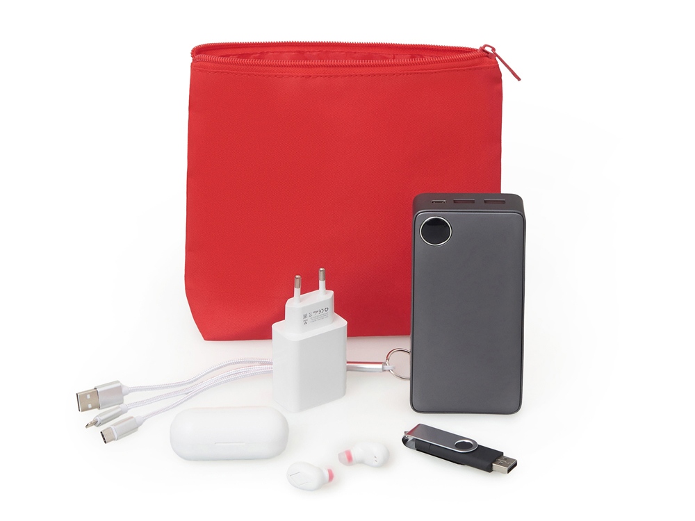 Органайзер для электроники и проводов Amalia из полиэстера 300D с подкладкой, красный купить оптом и в розницу с нанесением логотипа в Челябинске