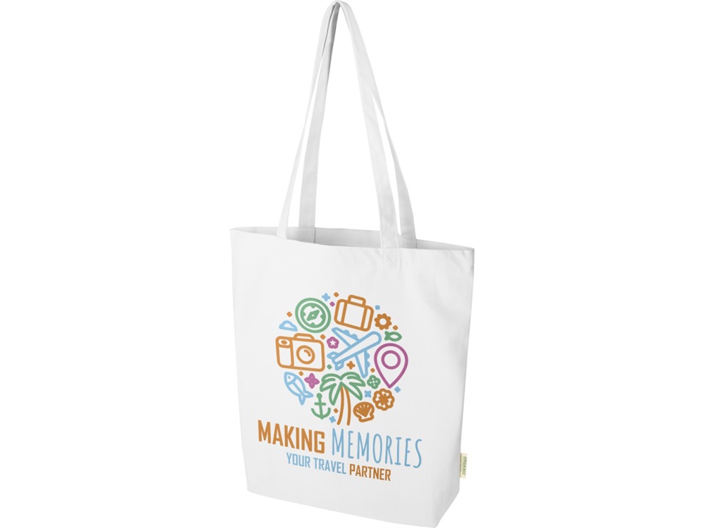 Эко-сумка Orissa с широким дном и длинными ручками, изготовленная из 100% органического хлопка, сертифицированного согласно GOTS, плотностью 270 г/м², станет более ответственным и долговечным выбором для ваших повседневных нужд. Благодаря широкому дну в нем предусмотрено дополнительное место для самых необходимых вещей на любой случай — от похода по магазинам до повседневной прогулки. Объем: 10 л. Органический хлопок.