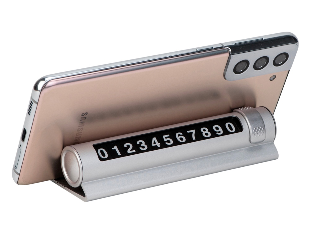 Парковочная табличка идеально подойдет для того, чтобы сообщить о вашем номере телефона водителям, которым может помешать автомобиль. Оборудована поворотным механизмом, что позволяет открыть/закрыть номер за секунду. Съемные магнитные цифры поставляются в комплекте, надежно крепятся на панели и не боятся тряски. При этом обратная сторона парковочной таблички выполняет функции подставки для телефона, который можно удобно установить на приборной панели. Для надежной фиксации в комплект приложены клеевые крепления. - выполнена из металла: долговечная, не боится перепадов температур - удобный поворотный механизм - магнитные цифры фиксируются на панели и не рассыпаются от тряски - подставка для телефона - клеевые крепления