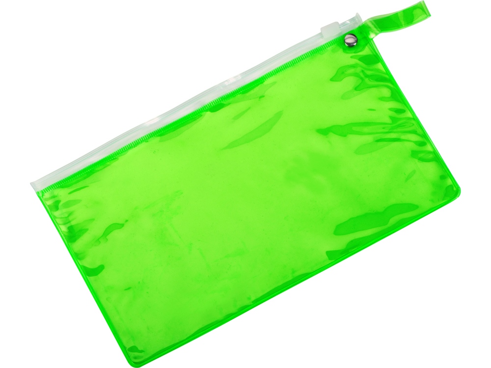 Яркий пенал из ПВХ закрывается на zip-замок. На этот пенал можно нанести название компании и вложить в него несколько сувениров небольшого размера.