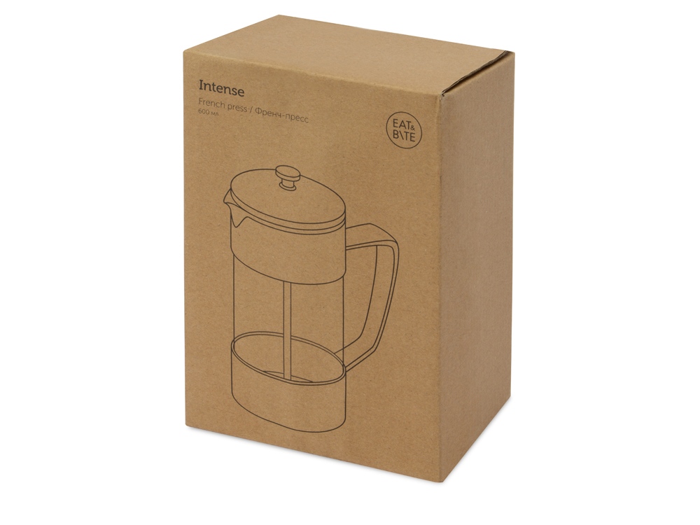 Френч-пресс Intense - незаменимый кухонный прибор, который подойдет для использования не только дома, но и в офисе. Легкость заваривания напитков во френч-прессе является отличным преимуществом при выборе корпоративного подарка в данной категории. - корпус из прочного пластика, емкость из жаропрочного боросиликатного стекла, устойчивого к перепадам температур - объема в 600 мл хватит минимум на 2 чашки кофе или чая - максимально рекомендованная температура воды - 120℃ - можно использовать в посудомоечной машине - не разрешается разогревать в СВЧ - значительная площадь для нанесения