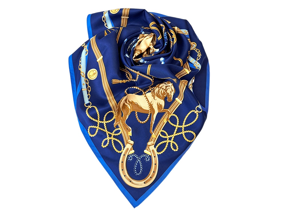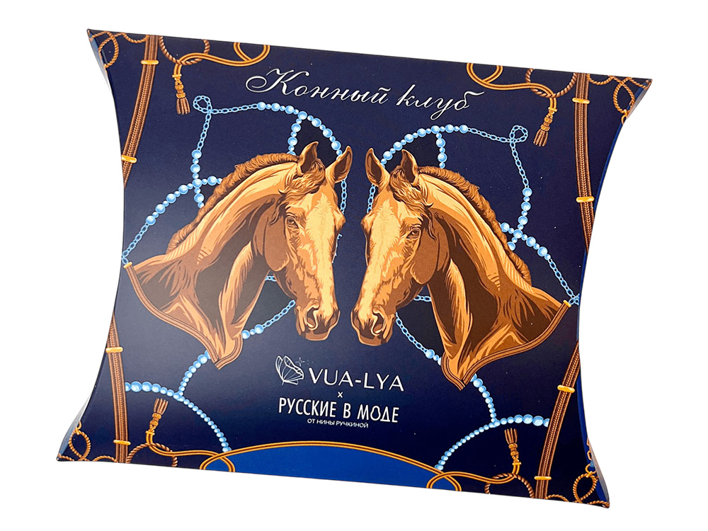Платок Конный клуб вдохновлен духом русского аристократизма, тесно связанного с традициями верховой езды. Образ лошади, занимающий особое место в изобразительном наследии России, — от древнерусской миниатюры до современных шедевров живописи — ассоциируется с благородством, честью и внутренней силой. Платок воплощает эти возвышенные качества, отраженные в природной эстетике конного экстерьера. В центре композиции размещены стилизованные портреты лошади элегантной рыжей масти. Ощущение воздушной среды и размах открытых просторов переданы сочетанием светло-бежевых, золотых, голубых оттенков фона. Рисунок изящной амуниции образует ажурный декор с акцентными элементами, заключая изображение в эффектную рамку. Платок Конный клуб создан брендом Русские в моде совместно с маркой VUA-LYA, производителем одежды и аксессуаров. Платок станет изысканным атрибутом стиля или незабываемым прекрасным подарком! Над дизайном платка работали: Нина Ручкина, Ольга Данилова.