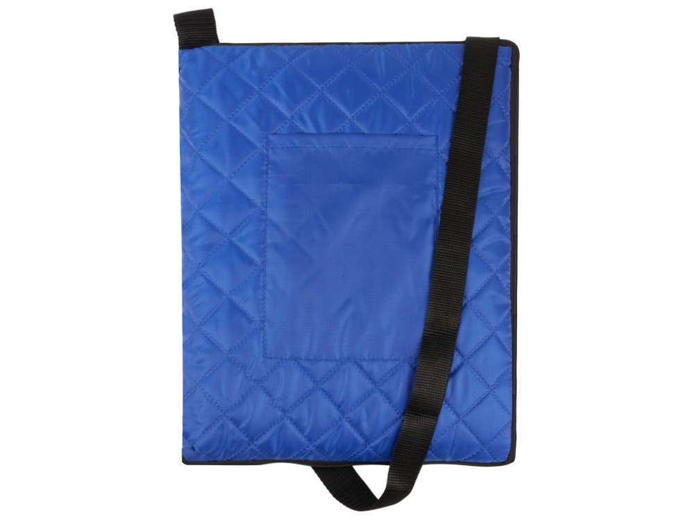 Двухсторонний плед с водоотталкивающим покрытием с одной стороны и мягким флисом с другой. Складывается в сумку на плечо и фиксируется с помощью молнии. В собранном виде имеет регулируемый по длине ремень для переноски и наружный карман для мелочей.