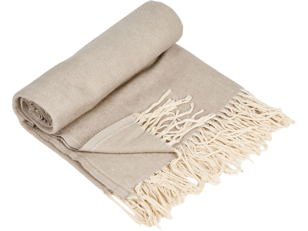 Плотный мягкий плед из натурального хлопка украшен бахромой. Можно использовать как теплое одеяло или как покрывало для украшения интерьера.