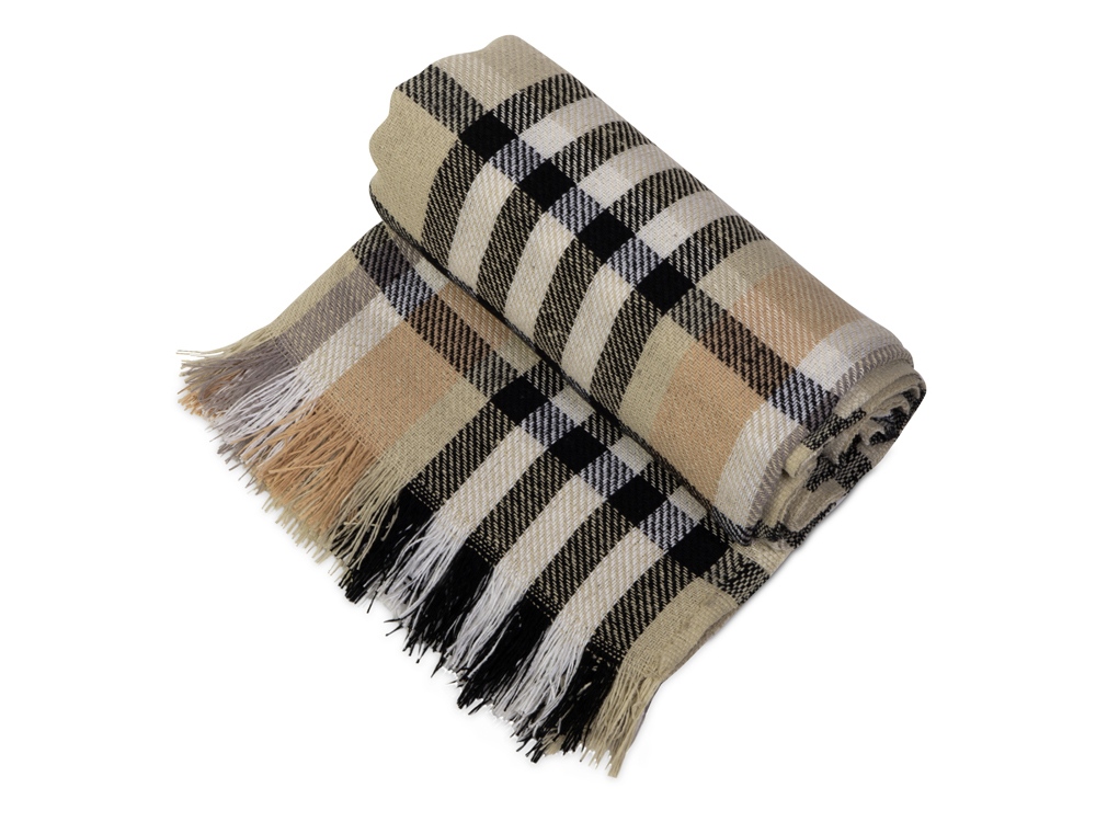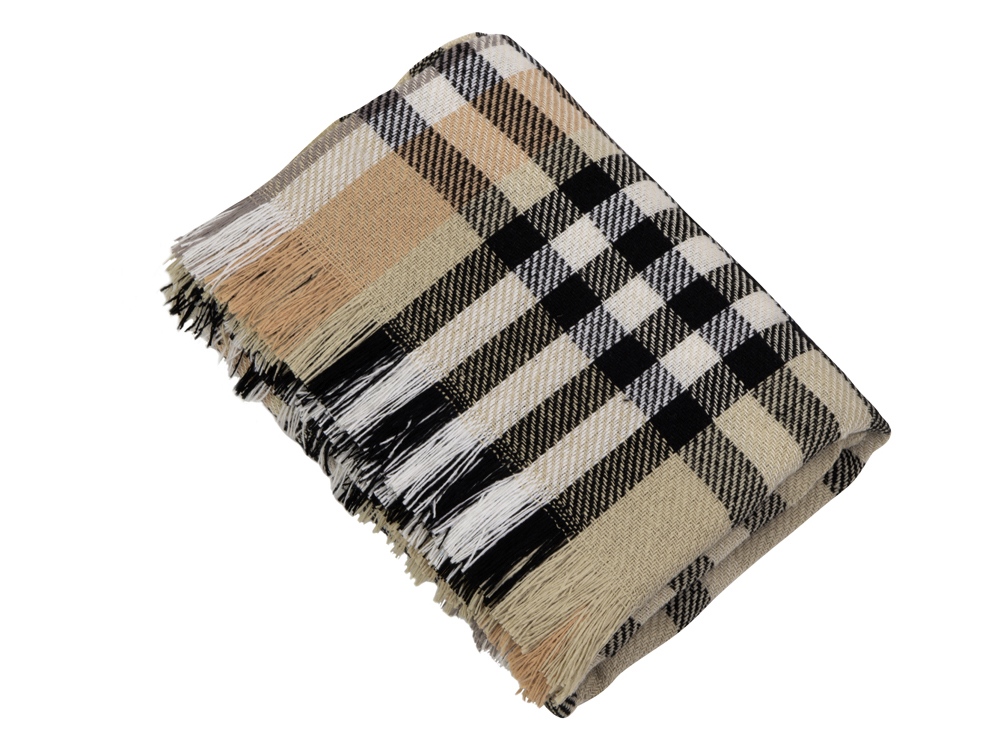 Плед Liner с бахромой, 140*205 см., бежевый с черным
