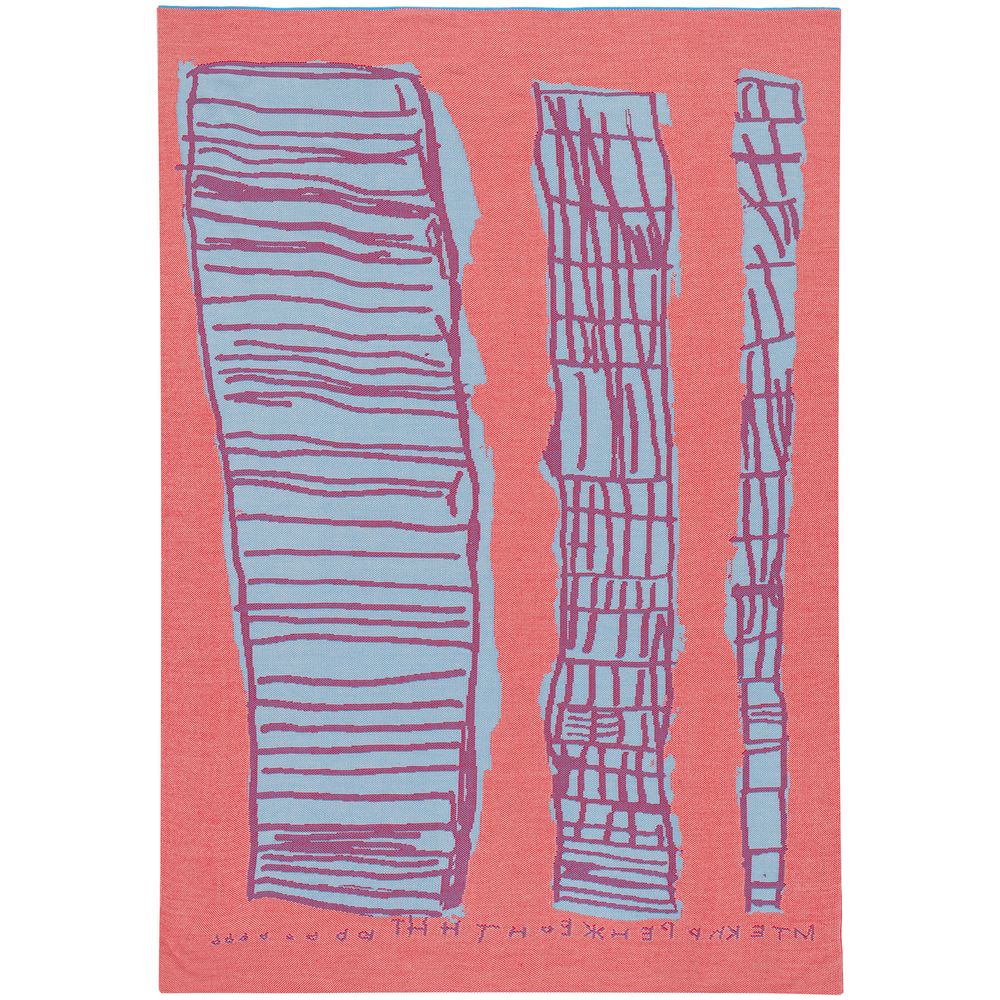 Плед с вывязанным логотипом и индивидуальным рисунком в фирменной цветовой гамме.