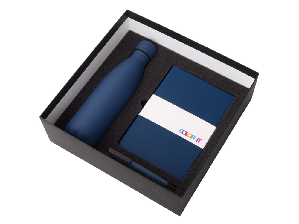 Color It — линейка, в которую входят хиты мерча в десяти самых популярных цветах. Еще никогда собрать сет под свой брендбук не было так просто. Широкая цветовая палитра серии позволяет создать идеальный набор в едином оттенке Pantone. Все товары имеют тактильно приятное покрытие софт-тач. Сет поставляется в коробке: мы продумали все, включая подарочную упаковку, за вас — осталось нанести лого! Классическая форма термобутылки сочетается с продуманной и технологичной конструкцией: вакуумная теплоизоляция и двойные стенки бутылки обеспечивают качественное сохранение температуры напитка до 24-х часов! Блокнот имеет твёрдую обложку и 256 страниц в линейку, даты не указаны, что позволяет начать вести блокнот в любой удобный день года. На нахзаце расположен карман для мелочей. Ляссе окрашено в тон обложки. На обложке блокнота есть магнитный держатель для металлических ручек. Тонкое письмо ручки обеспечивается пишущим узлом с толщиной письма 0,5 мм с нажимным механизмом. - бумага соответствует стандартам FSC; - софт-тач покрытие на всех предметах набора; - объём бутылки: 500 мл; - подарочная упаковка с дизайнерской бумагой уже включена в набор.