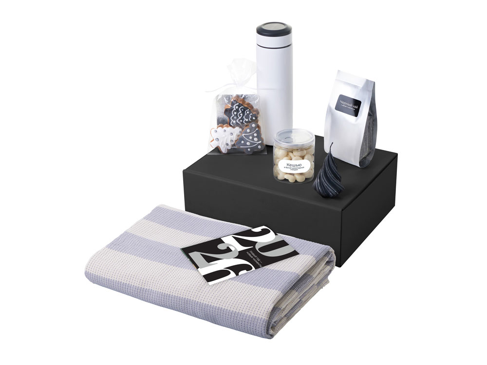 Новый год — новые моменты, которые хочется прожить по-настоящему. Вспомните детство, когда мы никуда не спешили, наслаждались каждым мгновением и делали то, что нам нравилось. Наборы серии Re: напоминают: важнее всего человек, а не его роль. Они дарят возможность замедлиться, отложить гаджеты и насладиться настоящим. Пусть новогоднее время станет паузой, наполненной тишиной, теплом и моментами, которые восстанавливают перед новым годом. Каждый набор — как мини-ритуал: согреться, замедлиться, почувствовать себя, поблагодарить и восстановиться после года, полного скорости, дедлайнов и шума. Это не о деловом спасибо — это о настоящем внимании. Это о том, чтобы сказать: Я вижу, сколько ты сделал. А теперь — время для тебя. Набор Re:Warm приглашает к маленькому ритуалу отдыха: укутайтесь в мягкий плед, налейте любимый чай, возьмите книгу или включите фильм и наслаждайтесь спокойным вечером. Кешью в шоколадной глазури и имбирное печенье делают каждый глоток и момент ещё теплее, вкуснее и уютнее.