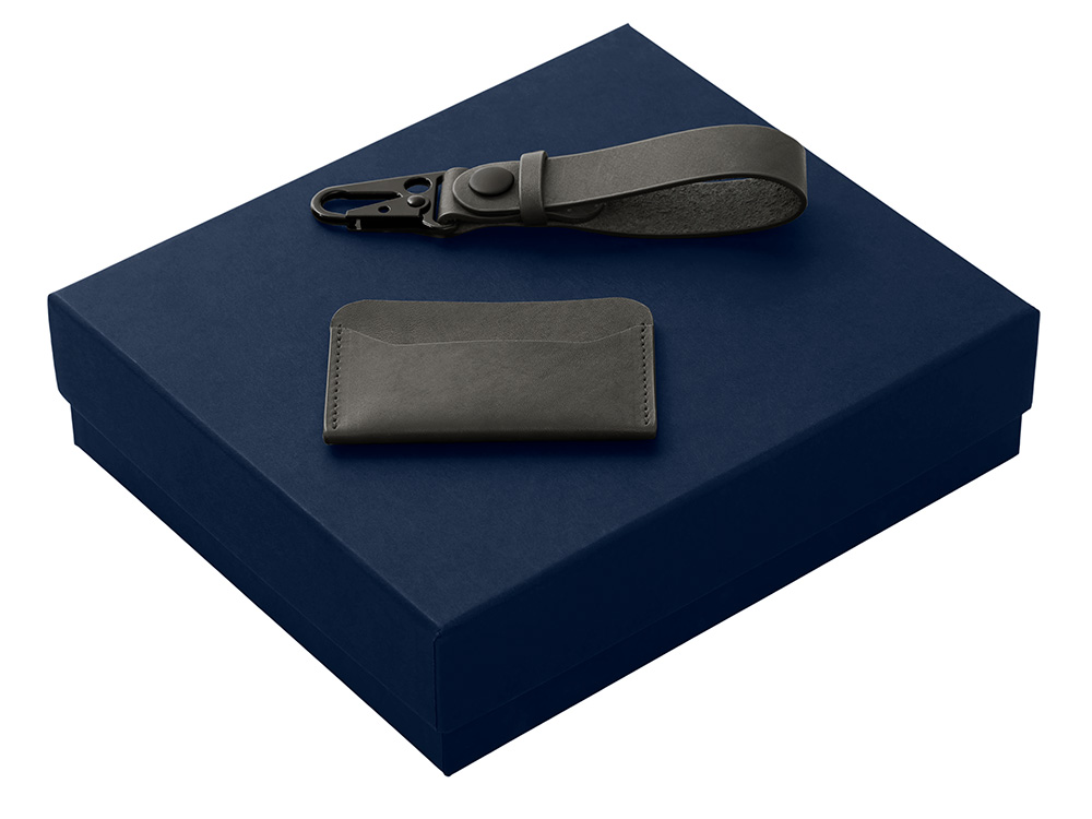 Подарочный набор Long River: картхолдер, ремешок для ключей (без лого Long River), синяя коробка