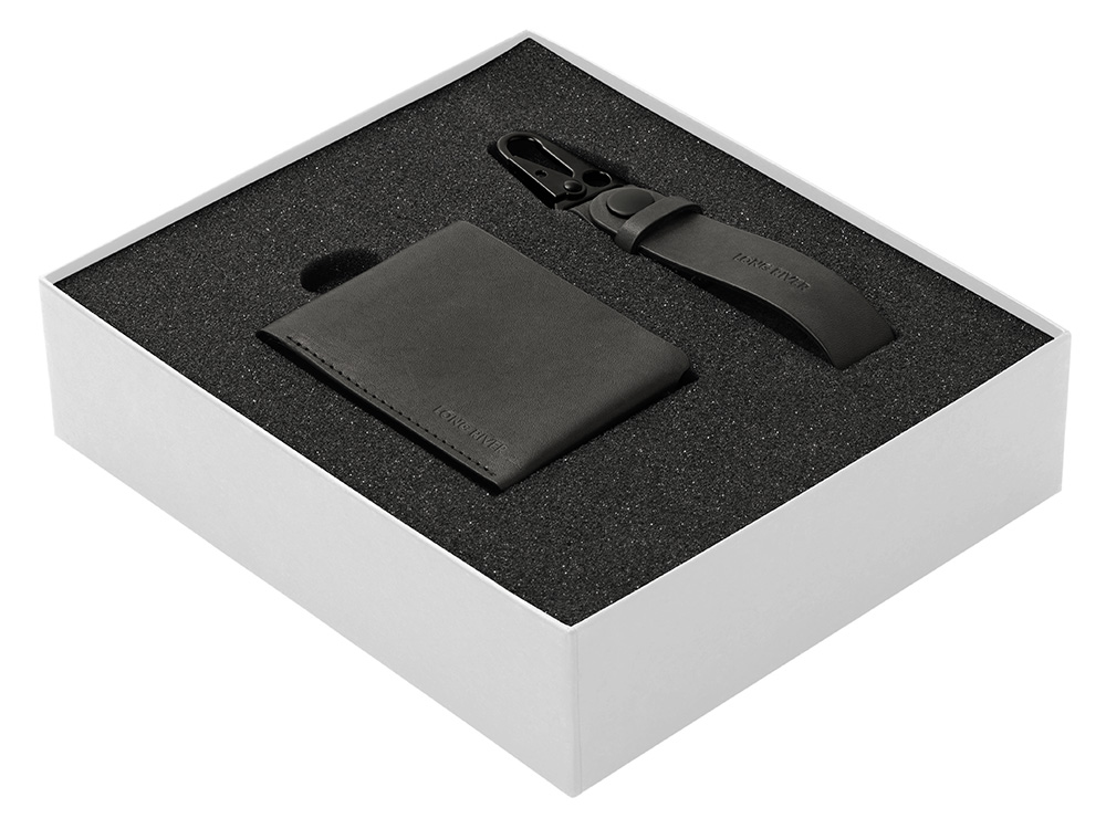 Идеальный дуэт для тех, кто ценит компактность и функциональность. Два аксессуара, которые освободят ваши карманы от громоздких вещей. Складной бумажник Маккензи: Невероятно тонкий, но вместительный. Внутри — три отделения для купюр любого формата (включая евро) и нескольких карт. Сшит вручную из качественной кожи, совершенно не ощущается в кармане. Ключный ремешок Ориноко: Простое и гениальное решение для ключей. Прочный черный кожаный ремешок с надежным карабином, который невозможно расстегнуть случайно. Крепится к шлевке или ремню — ключи всегда под рукой и не потеряются. Комплектация: складной бумажник, ключный ремешок с карабином. Упаковка: Стильная коробка из переплетного картона, готовая к персонализации.