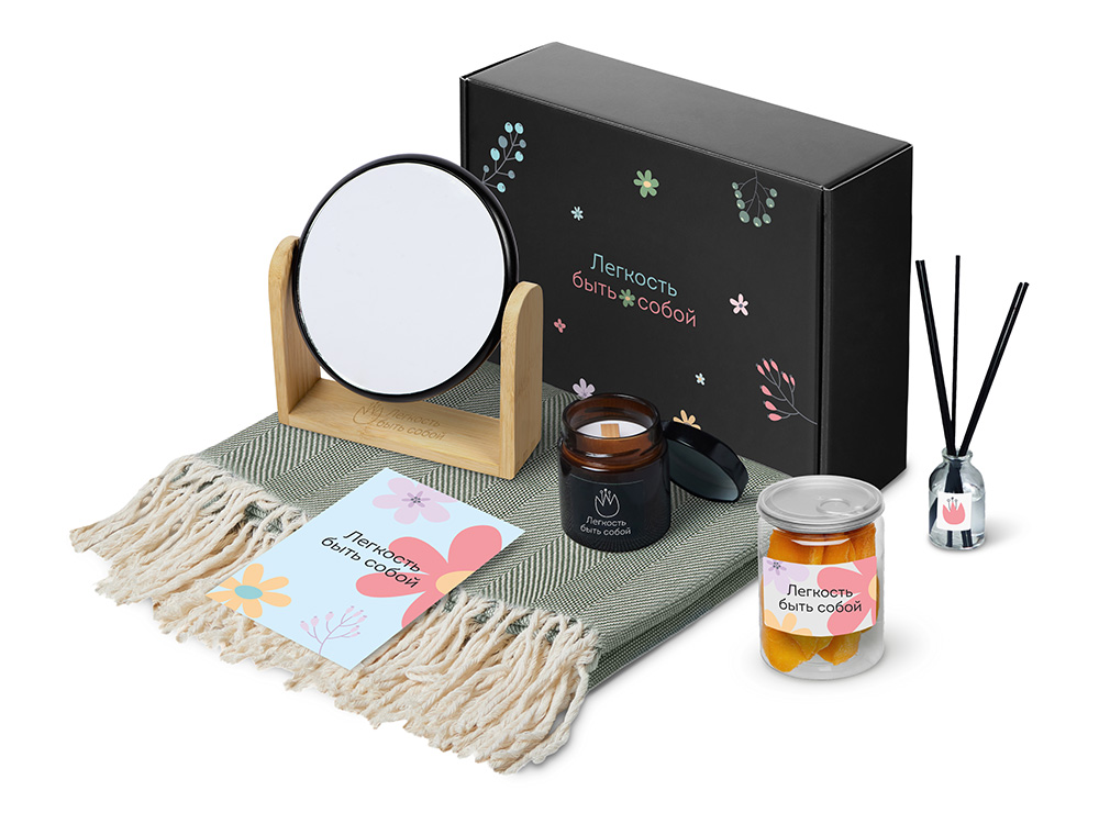 Наборы серии Re: напоминают: важнее всего человек, а не его роль. Они дарят возможность замедлиться и насладиться настоящим. Каждый набор — как мини-ритуал: согреться, почувствовать себя, поблагодарить и восстановиться после дней, полных скорости, дедлайнов и шума. Re:f. — наборы для неё, наборы для мягкой гармонии и перезагрузки, которые дарят возможность замедлиться, восстановить ресурс и почувствовать заботу в каждом моменте. Re:f. Shelter — о чувстве защищённости и тихом пространстве для себя. Укутайтесь в плед, зажгите свечу, пусть диффузор наполнит комнату мягким ароматом — так создаётся настроение покоя и уюта. Зеркало становится маленькой деталью внимания к себе, а сушёное манго добавляет солнечную, тёплую нотку, напоминая о простых радостях. Этот набор — про личное укрытие, где можно выдохнуть, замедлиться и просто побыть в моменте.