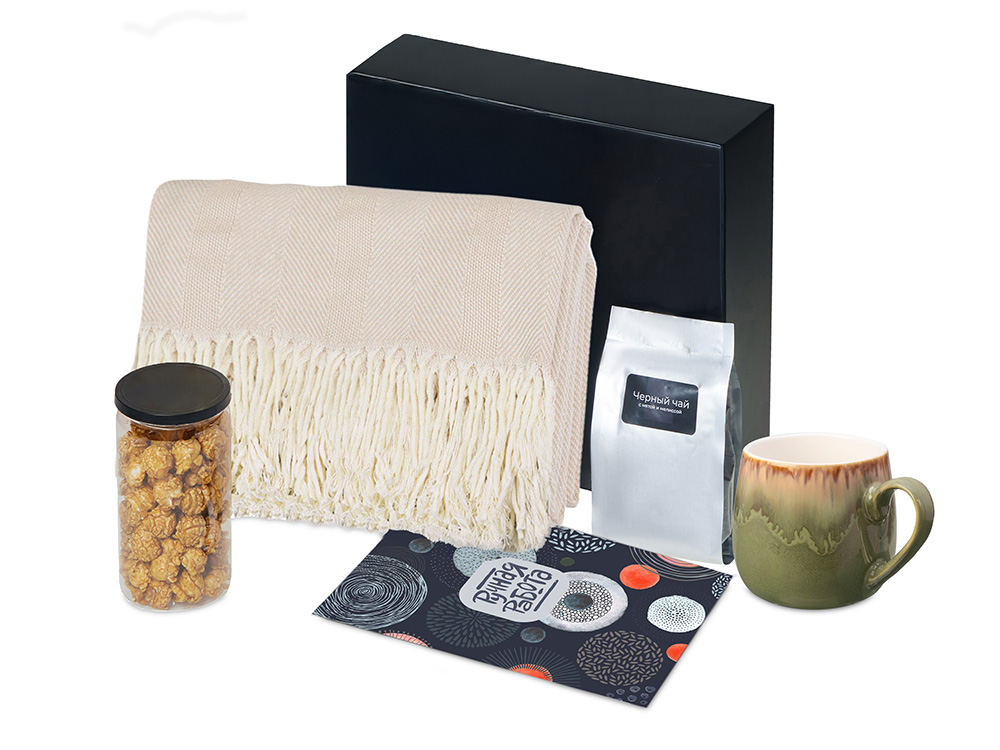 | Материал товара | плед - 100% хлопок, кружка - костяной фарфор с покрытием софт-тач, чай - пластик, попкорн - пластик, металл, мешок - нетканый материал (спанбонд), коробка - картон |