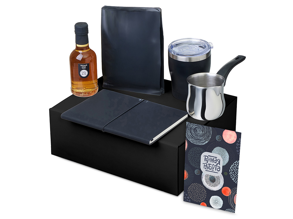 | Материал товара | сироп - стекло, блокнот - искусственная кожа, бумага, турка - нержавеющая сталь, бакелит, кофе - пластик, термокружка - нержавеющая сталь, керамика, полипропилен, мешок - нетканый материал (спанбонд), коробка -картон |