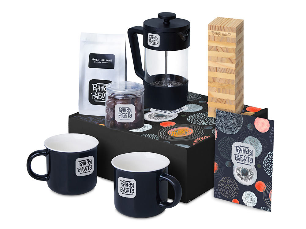 | Материал товара | кружка - костяной фарфор, френч-пресс - боросиликатное стекло, нержавеющая сталь, пластик, чай - пластик, игра - сосна, миндаль - пластик, мешок - нетканый материал (спанбонд), коробка - картон |