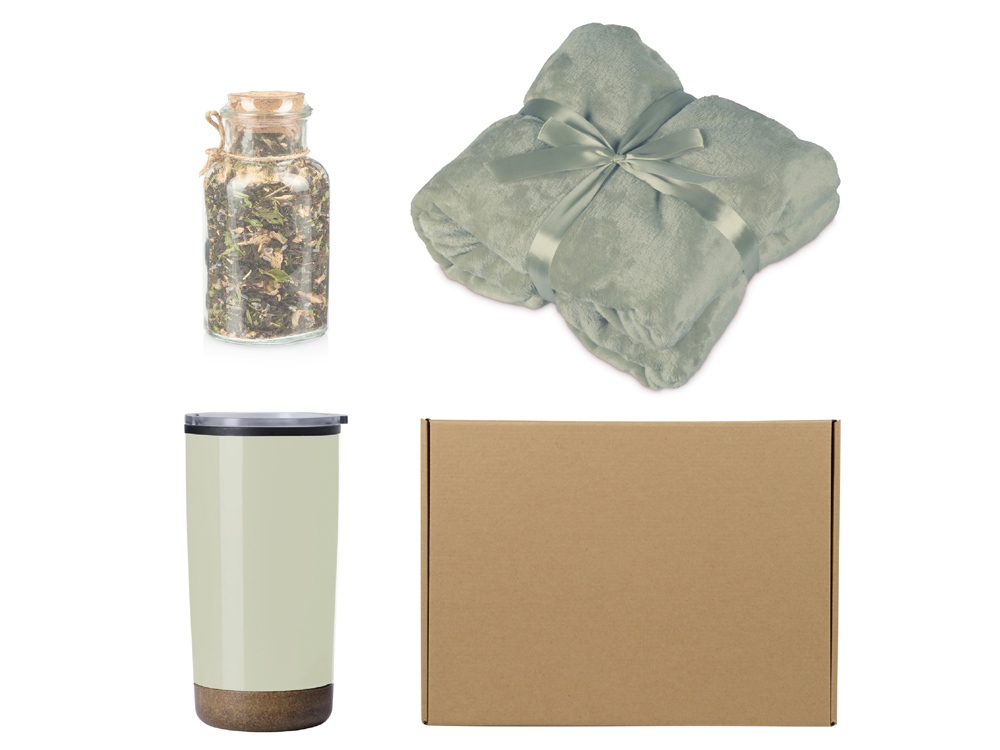 | Материал товара | плед - флис из 100% полиэстера, термокружка - нержавеющая сталь снаружи, полипропилен внутри, сокочай - стекло, пробковая крышка, коробка - картон |