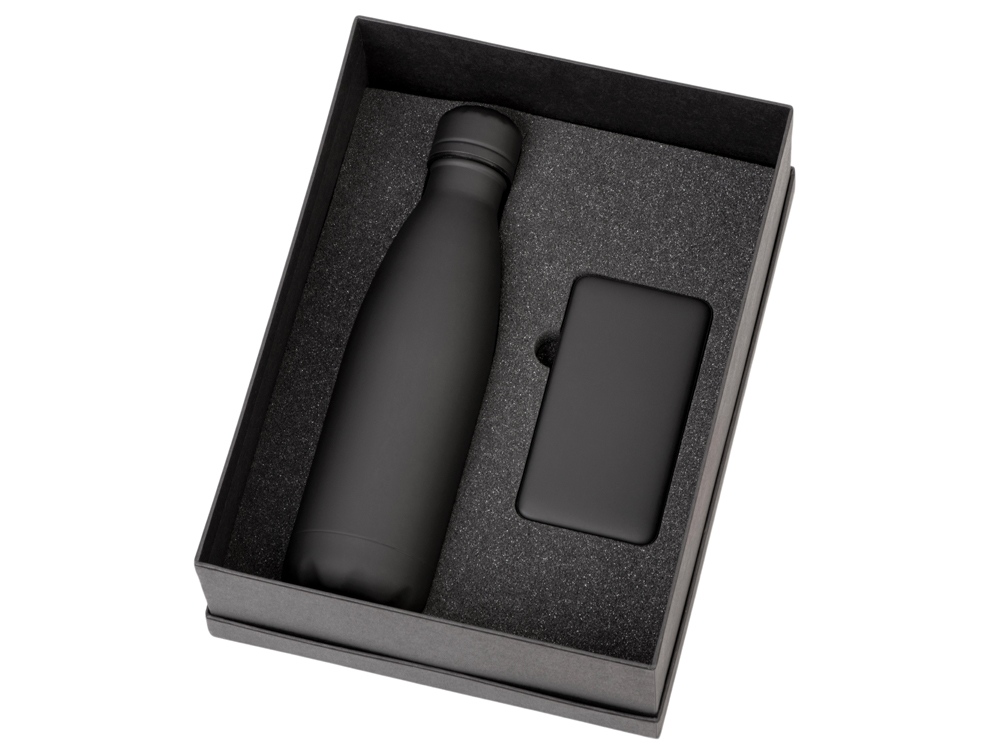 Подарочный набор с термобутылкой и повербанком С2, черный