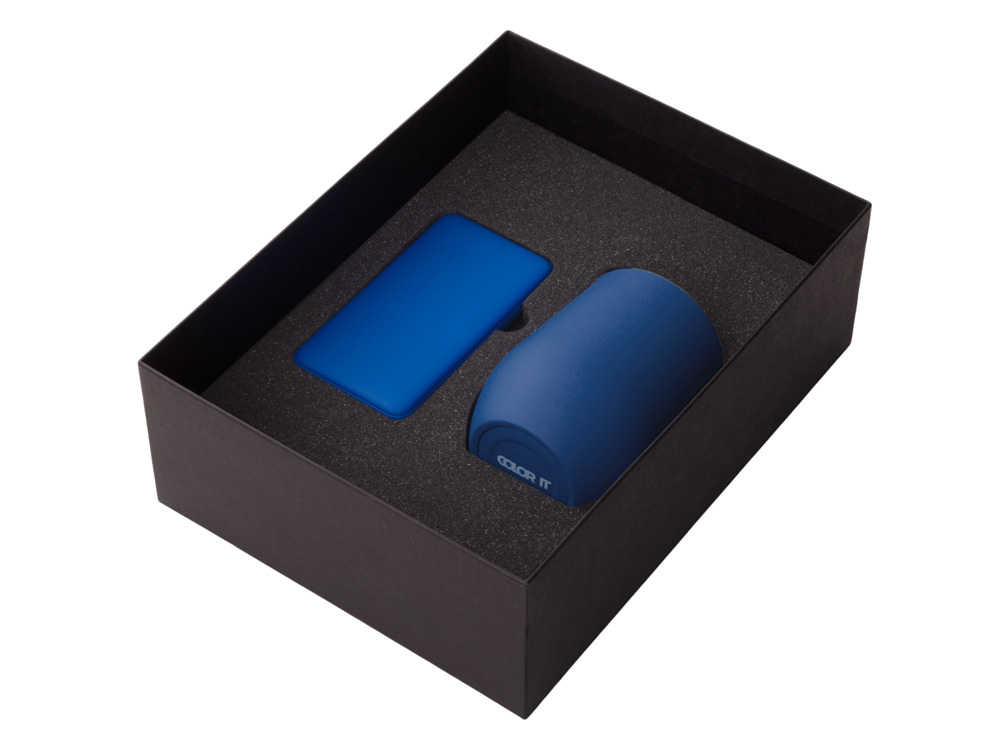 Подарочный набор с термокружкой и повербанком С1, 5000 mAh, синий