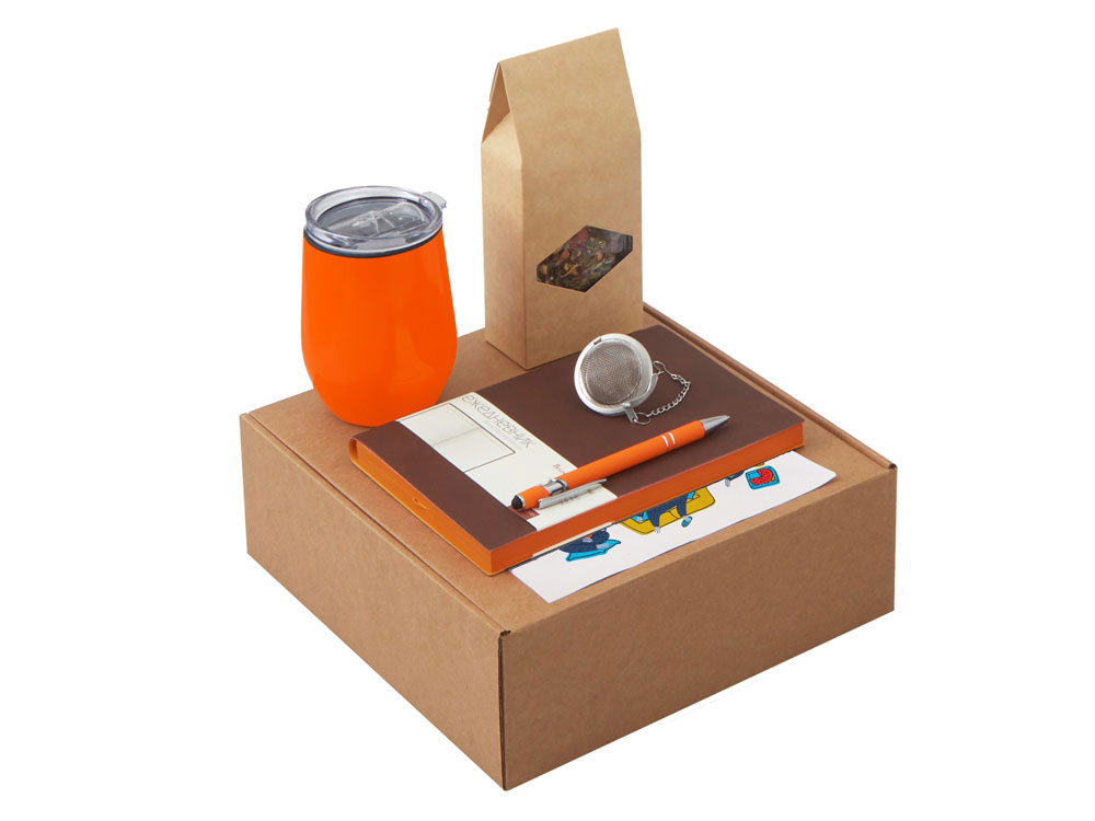 Набор Writea станет отличным подарком для сотрудников, клиентов и партнёров, подчеркнёт внимание к их комфорту и заботу о деталях. Он уместен как корпоративный подарок на праздники, юбилеи и деловые мероприятия, так и в качестве welcome-набора для новых коллег. Набор объединяет всё необходимое для комфортного рабочего дня: Ежедневник для идей, заметок и составления рабочих планов на день. В ежедневнике есть полезная справочная информация; Ручка, которая всегда под рукой; Практичная термокружка Pot отлично подойдет для использования как дома, так и в офисе, сохраняет тепло до 3-х часов; Ситечко для заваривания — незаменимая вещь для любителей чая. Оно помогает сохранить истинный вкус и аромат напитка, позволяя наслаждаться настоящим листовым чаем без лишних хлопот. Компактное и удобное, ситечко подходит для дома, работы, путешествий или отдыха на природе; Чай Малина с мятой - идеально подходит для вечернего расслабления после насыщенного дня; Набор стикеров — для ярких акцентов и персонализации вещей; Универсальный ложемент обеспечивает аккуратное размещение и надёжную фиксацию элементов, делая набор эффектным и презентабельным при вручении. Дополнительное преимущество — набор доступен в конструкторе наборов: компоненты можно заменить и собрать индивидуальный вариант под стиль компании или вкусы получателя.