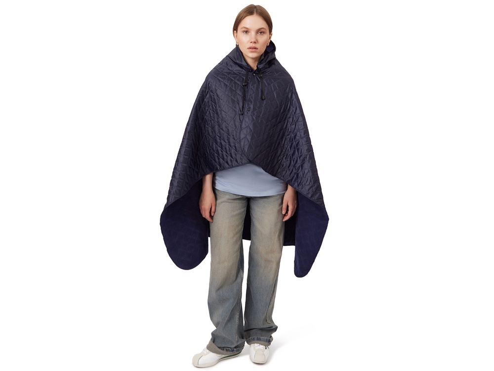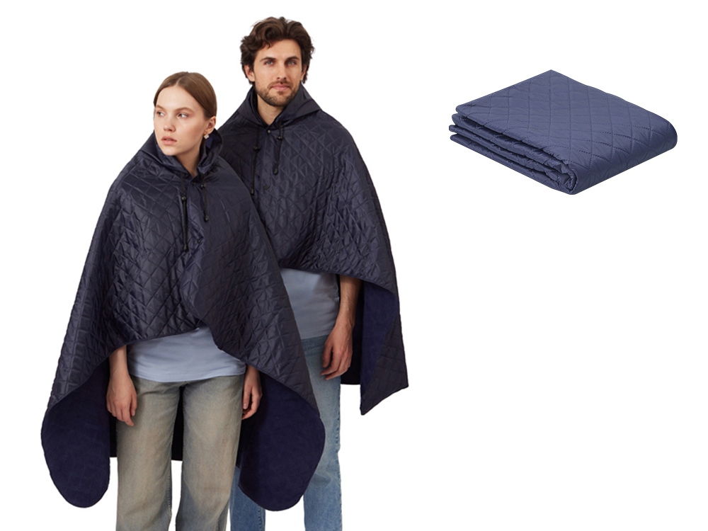 Плед 2-в-1 можно использовать как непромокаемое покрывало на землю и как согревающую и непромокаемую накидку во время пикника на природе. С одной стороны пледа водоотталкивающее покрытие, с другой - мягкий флис. На внутренней стороне из флиса приятно и тепло сидеть, а наружная сторона из полиэстера с водоотталкивающим покрытием не позволяет пледу намокнуть или сильно испачкаться. Для больше удобства использования пледа во время дождя в комплекте идет капюшон, который фиксируется с помощью липучки. Накинув плед на плечи, застегните его на кнопки вверху и наденьте капюшон. Вы не промокните во время неожиданного дождя! В комплекте идет мешок для хранения, который можно использовать для нанесения вашего логотипа.